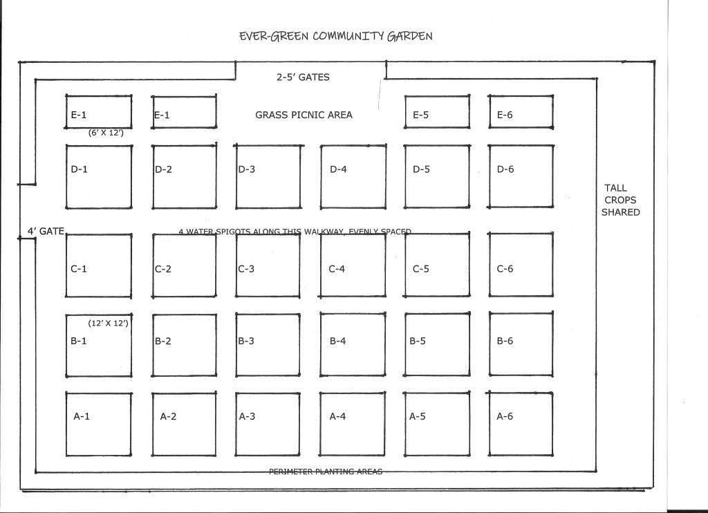 We began reaching out to community members to gauge interest and found that many families were eager to have their own garden plot. We began planning, fundraising and information gathering, using other local gardens as inspiration for our effort and selecting the best aspects of each to bring into the Ever-green Community Garden.
