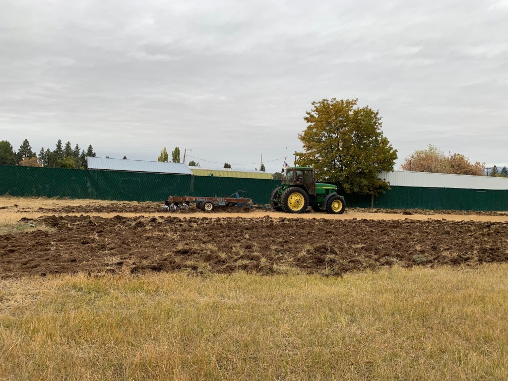 Thanks to the generosity of Dirk Lybeck, the Ever-green Community Garden was tilled On October 16. Mr. Lybeck used his tractor to turn over the soil in our 120’x75′ space. Have to say it was fun to watch and the dirt smelled so good.